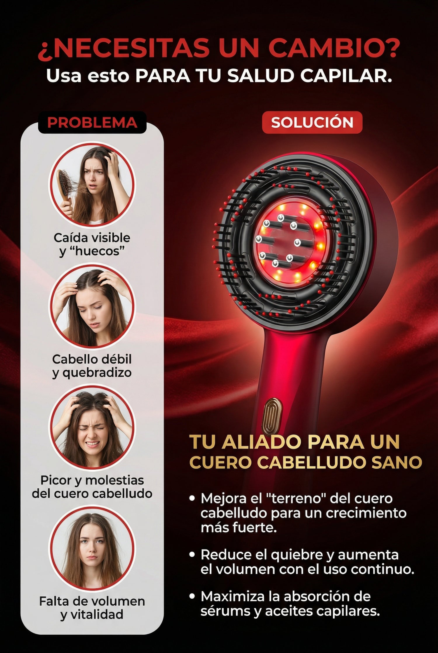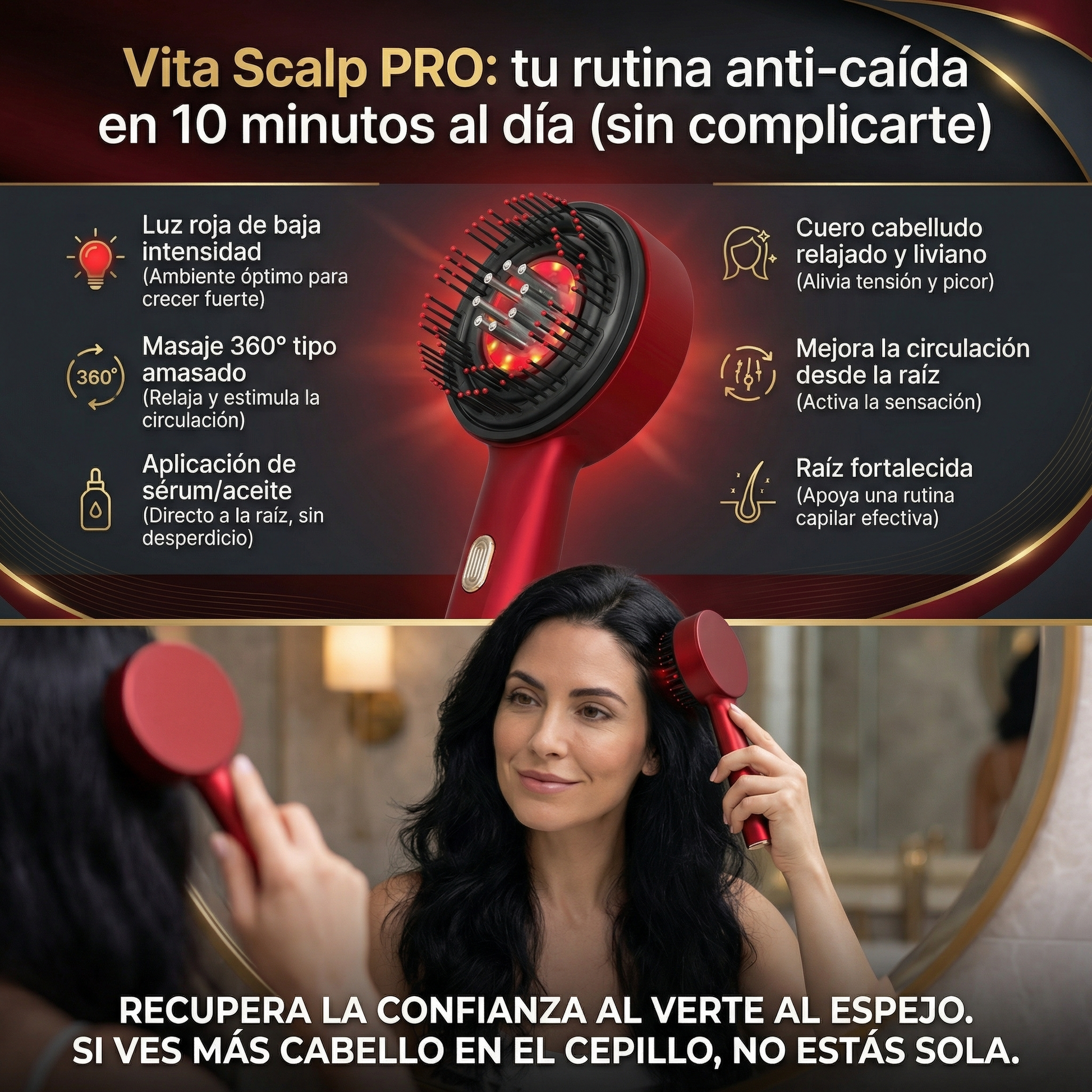 Vita Scalp PRO está pensado para mujeres que quieren una solución práctica: en casa, sin citas, sin procesos complicados. Úsalo en seco o durante tu rutina, y convierte un problema diario en un hábito de autocuidado que sí puedes sostener.